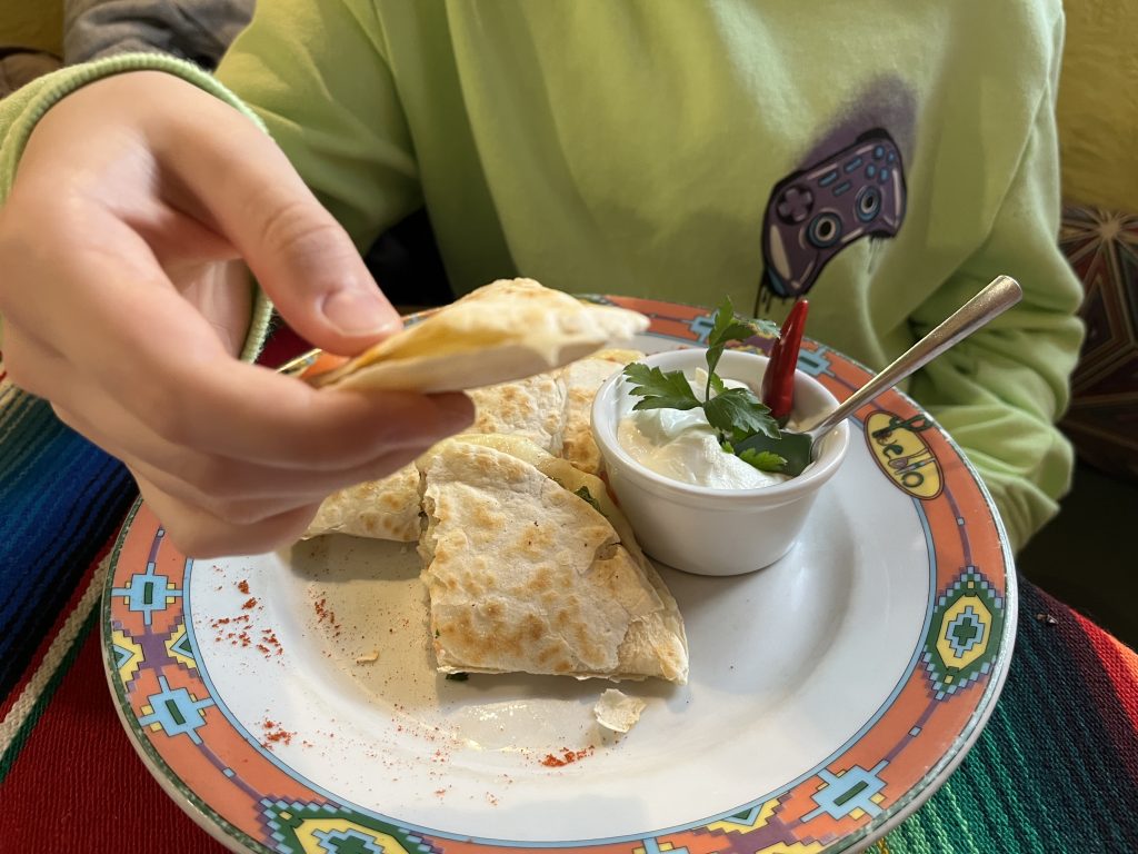 W sumie zaskoczenia były dwa. Pewnie wyjdę na kulinarnego ignoranta, ale oprócz tych super tacos odkryliśmy jeszcze jedną rzecz- quesadillas można jeść z kwaśną śmietaną! Proste ale genialne. Do tej pory wcinałem je z jakimiś dziwnymi sosami a tu proszę- gęsta śmietana, z odrobiną soku z limonki i już mamy zupełnie inny smak. Ten patent powtórzyłem w domu i wyszło pysznie.